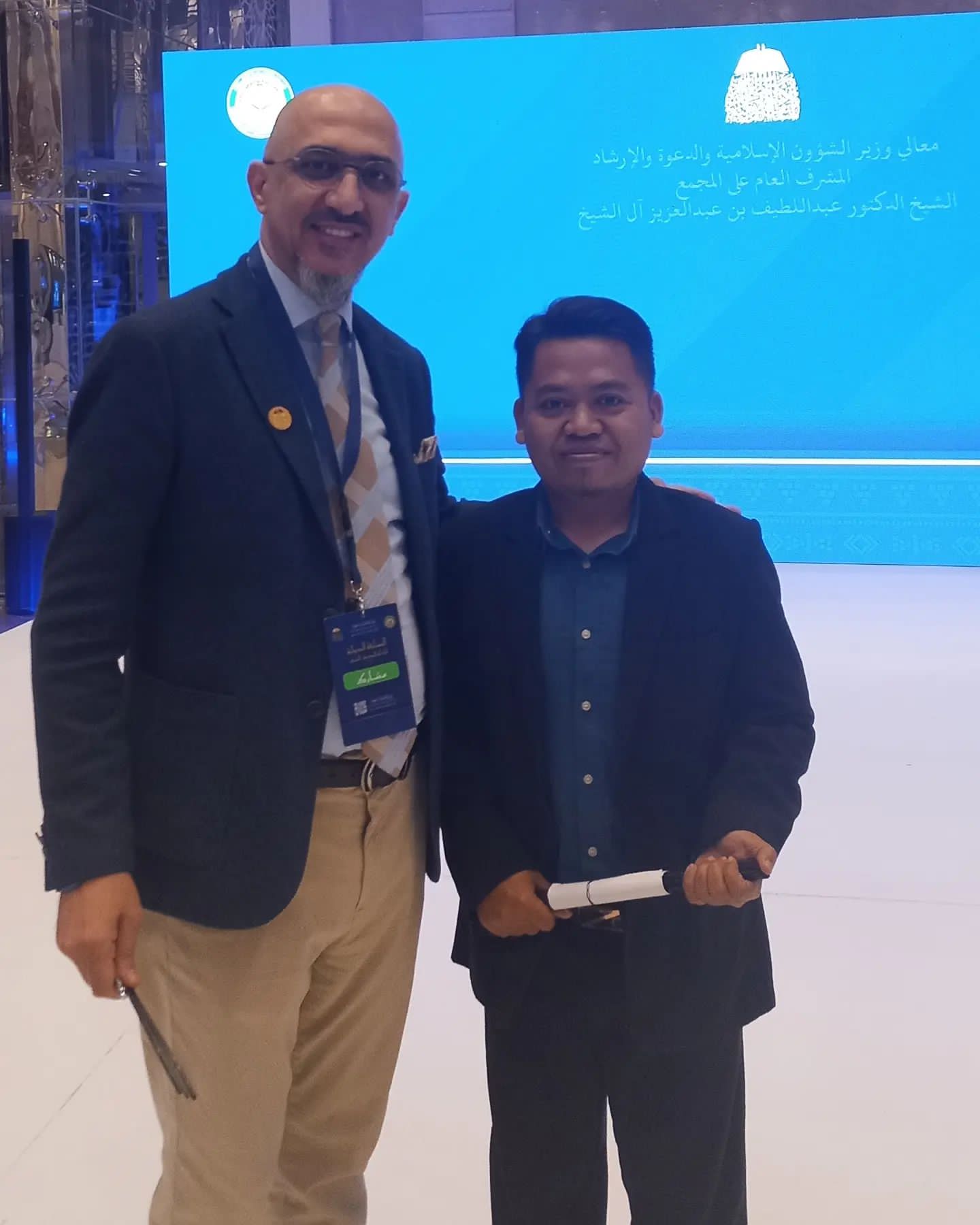 Sungguh membanggakan. Koordinator Ahaly Hamidi indonesia, al-Ustadz Yasir Amrullah, termasuk ke dalam salah satu kaligrafer yang mendapatkan penganugerahan dalam kompetisi internasional penulisan mushaf di Madinah.